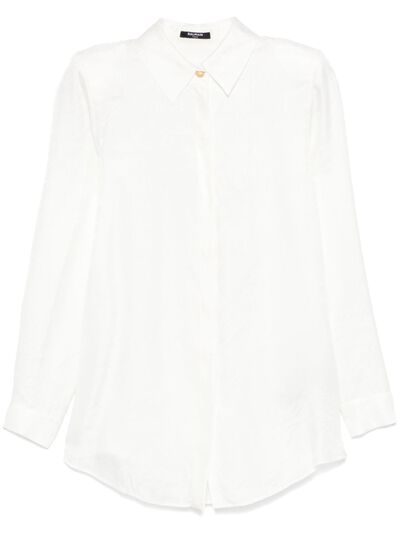 white concealed front button fastening classic collar shoulder pads long sleeves