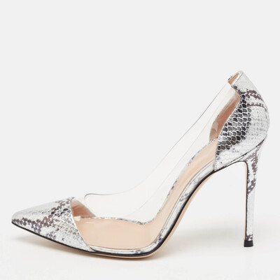 Gianvito Rossi Silver Snake Embossed Leather and PVC Plexi Pumps Size 39.5 1084803 (lpn28859793)
