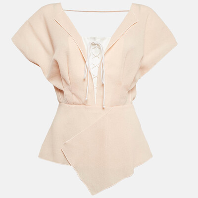 Roland Mouret Pink Wool Crepe Lace-Up Pleated Top S 1084678 (розовый, lpn28901361)