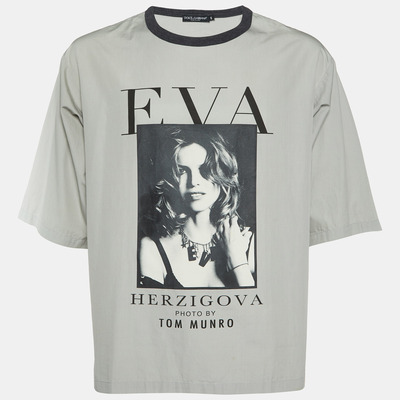 This Dolce and Gabbana x Tom Munro mens T shirt in grey is cut for a relaxed fit and designed with a crew neckline, short sleeves, and Eva Herzigova print on the front. Youll love the comfort and style it brings.