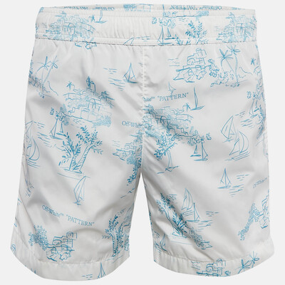 Off-White White Printed Nylon Swim Shorts M 1086266 (белый, lpn28931697)