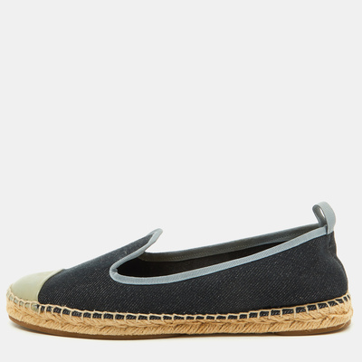 These Fendi flats combine navy blue and grey denim with patent leather accents. Featuring a stylish cap toe and a comfortable espadrille sole, they are ideal for everyday wear.