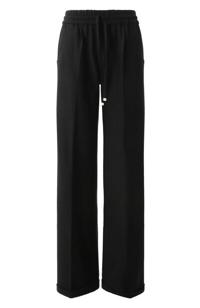 Кашемировые брюки со стрелками и отворотами поддержат повседневный образ любой степени сложности. Модель с эластичным поясом-кулиской дополнили двумя боковыми и парой задних карманов.