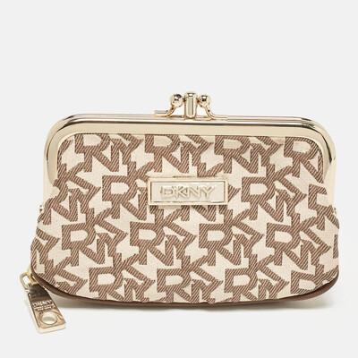 DKNY Beige/Brown Signature Canvas Kisslock Frame Coin Purse 1088850 - 1 small