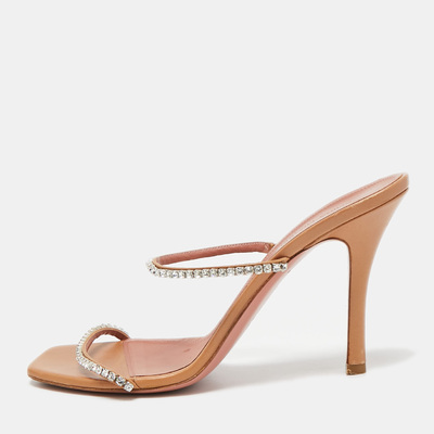 Amina Muaddi Brown Leather Gilda Slide Sandals Size 40 1088727 (коричневый, lpn28951331)