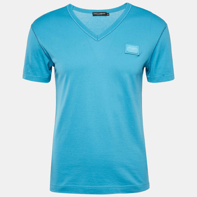 Dolce&Gabbana Blue Cotton V-Neck T-Shirt XS 1089743 (голубой, lpn28965235)
