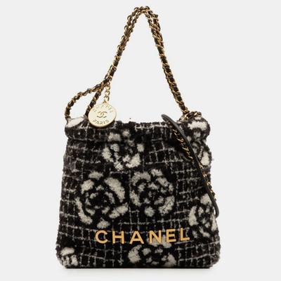 Chanel Black Cotton Camellia Logo Gold Chain Tote Shoulder Bag 1090230 (чёрный, lpn28970677)