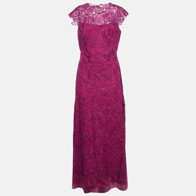 Tadashi Shoji Burgundy Floral Lace Maxi Dress M 1090162 (lpn28972773)
