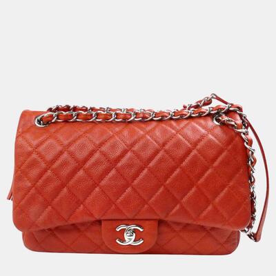 Chanel Orange Caviar Leather Large Flap Shoulder Bag 1091382 (оранжевый, lpn28979389)