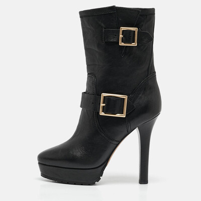 Jimmy Choo Black Leather Ankle Length Boots Size 37 1092619 (чёрный, lpn28995404)