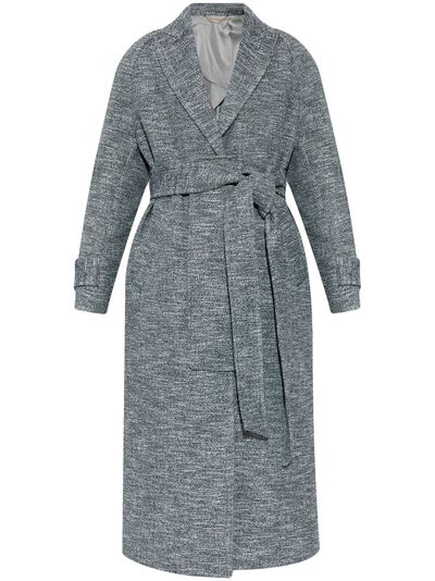 grey concealed front fastening belted waist belted cuffs American rear vent