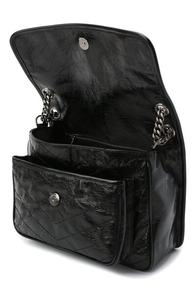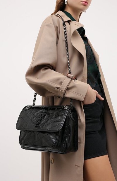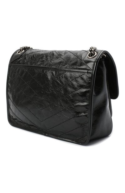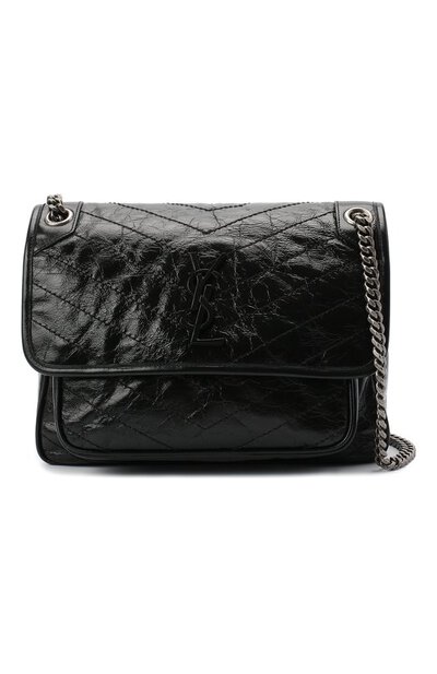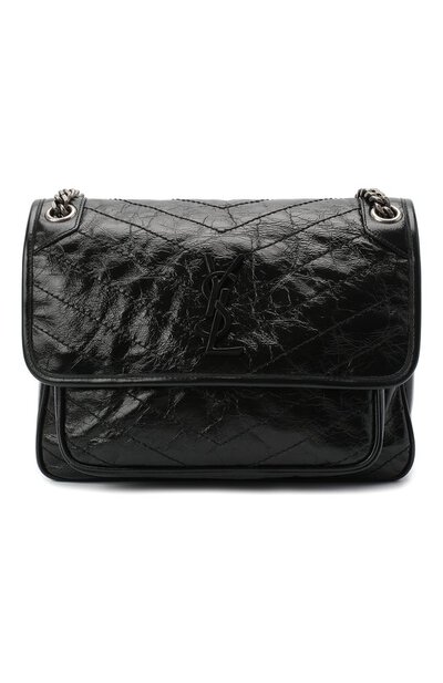 Сумка Niki универсального черного цвета впишется даже в строгий офисный образ. Лаконичность аксессуара не нарушает монограмма Кассандра с матовым покрытием в тон. Мастера марки, основанной Ивом Сен-Лораном, сшили модель из мягкой кожи с мятым эффектом.