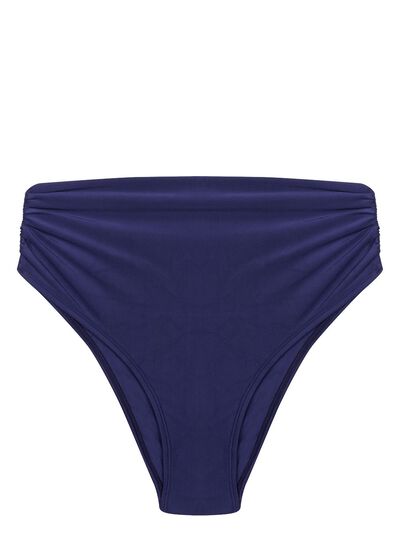 navy blue stretch-design high-waisted elasticated waistband gathered detailing Be mindful to try on swimwear over your own garments.