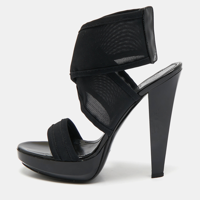 Fendi Black Mesh and Patent Ankle Strap Sandals Size 38 1092107 (чёрный, lpn29018765)