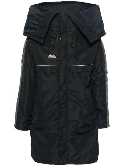 navy blue/light grey gabardine weave padded design front press-stud and zip fastening spread collar long sleeves side stripe detailing ribbed cuffs torchon piping detail logo print at the chest two side flap pockets logo print to the rear full lining straight hem long length When buying this unisex item, keep in mind that it is graded in standard men's sizing.