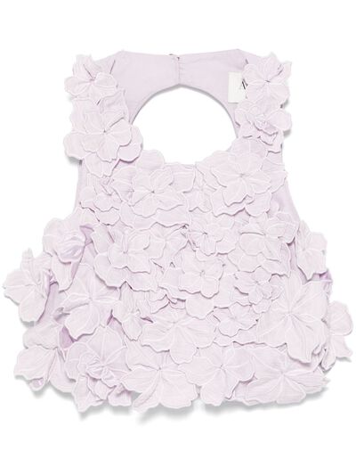 light purple rear clasp fastening rear button fastening floral appliqué open back