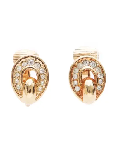 circa 2000s gold-tone gold plated polished finish rhinestone embellishment clip-on design These earrings come as a pair. Condition: GOOD. This previously owned and used item is in good condition with minimal signs of use. This may include fading of material or plating and scratche