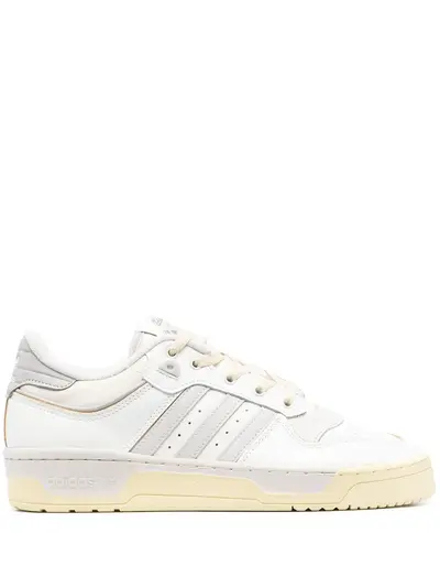 white/cream white calf leather signature 3-Stripes logo logo patch at the tongue branded heel counter round toe front lace-up fastening flat rubber sole