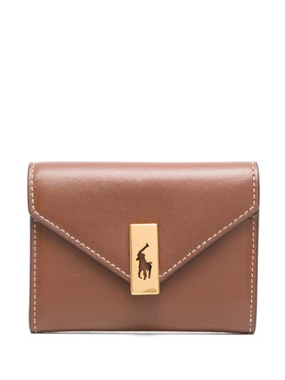 cognac brown foldover top with press-stud fastening rear card slots internal card slots coin pocket