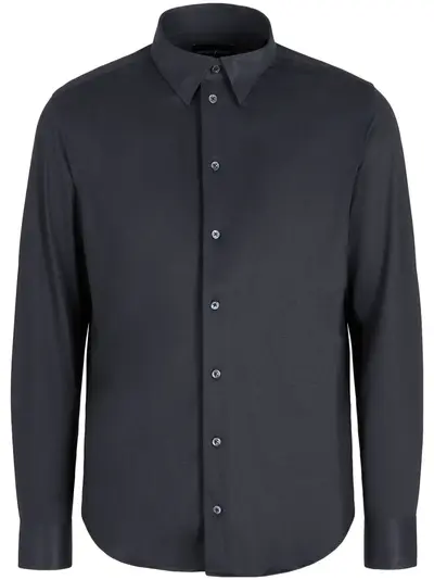 black satin finish front button fastening buttoned cuffs pointed flat collar curved hem