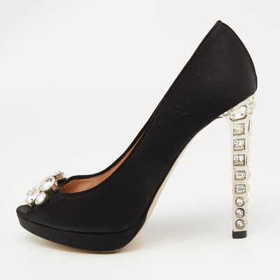 Miu Miu Black Satin Crystal Embellished Peep Toe Platform Pumps Size 37 1098051 (чёрный, lpn29053601)