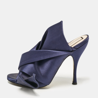 No. 21 Navy Blue Satin Raso Knot Peep Toe Mules Size 41 1097794 No. 21 (lpn29053690)