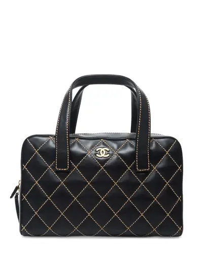 circa 2003-2004 black calf leather signature Wild Stitch quilting signature interlocking CC logo two top handles top zip fastening main compartment full lining logo-engraved gold-tone hardware Serial Number: 8019818 Condition: GOOD. This previously owned and used item is in good condition with minimal signs of use. This may include fading of material or plating and scratches.