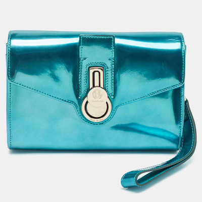 Indulge in sophistication with this Baldinini creation, showcasing a striking metallic blue hue. Crafted from luxurious patent leather, this elegant wristlet clutch is designed for the modern woman. Made meticulously in Italy, it embodies both style and practicality with its compact yet spacious interior. The smooth fabric lining ensures your essentials are kept in refined care. A perfect fusion of Italian craftsmanship and chic design, this piece is destined to elevate any ensemble.