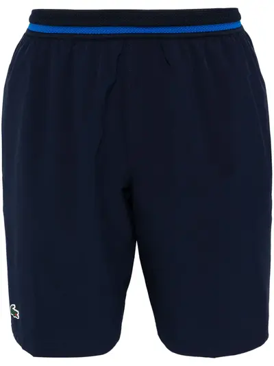 navy blue elasticated waistband with internal drawstring two side welt pockets