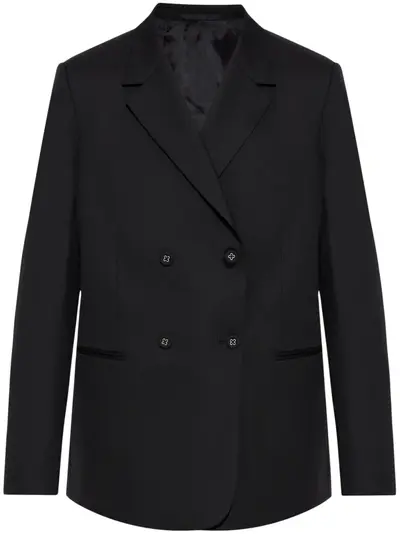 black double-breasted button fastening two side welt pockets buttoned-cuff sleeves notched lapels