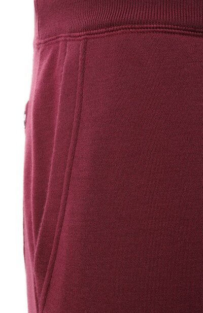 Брюки с широким эластичным поясом-кулиской выполнили из кашемирового трикотажа. Изделие дополнили тремя карманами, подчеркнув задний накладкой в виде фирменного октагона. Предлагаем сочетать модель с белой футболкой и парной толстовкой.