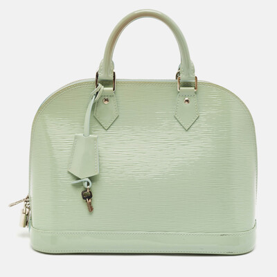 Introduced by Gaston Louis Vuitton in 1934, the Louis Vuitton Alma is defined by elegant curves and notable features. From one of the most iconic collections of Louis Vuitton, this PM bag is imbued with exquisite craftsmanship and historic details. Constructed from Peppermint Electric Epi leather, it is held by dual top handles, and it is adorned with silver tone accents. The zipper closure at the top is equipped with dual sliders and secures its Alcantara lined interior.