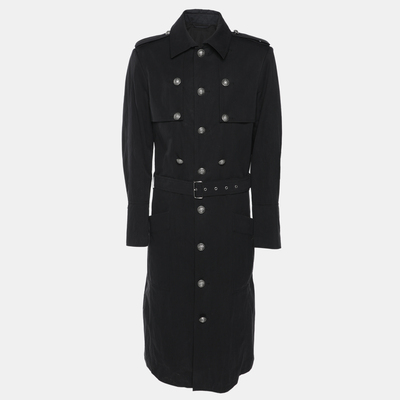 Balmain Dark Grey Cotton Blend Belted Coat XL 1100488 (lpn29082008)