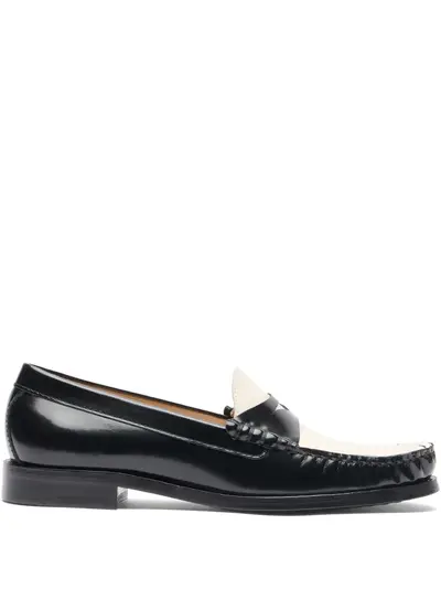 black slip-on style flat leather sole branded insole round toe