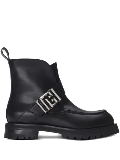 black side zip fastening round toe rubber sole pull-tab at the heel