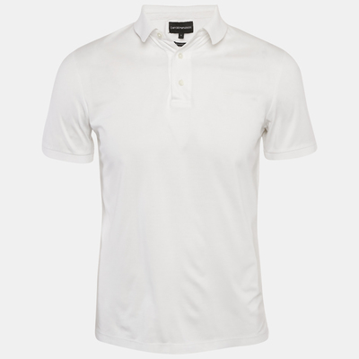 Elevate your casual elegance with this Emporio Armani white cotton polo. Crafted from premium jersey fabric, it offers unmatched comfort and a polished look. The buttoned closure adds a touch of sophistication, making it ideal for relaxed yet refined outings. Designed for the modern man, this piece embodies timeless style and versatility. Effortlessly complement your wardrobe with this blend of luxury and everyday wear, a must have for the discerning fashion enthusiast.