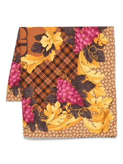 circa 2000s cedar brown silk twill weave square shape mix print Condition: GOOD. This previously owned and used item is in good condition with minimal signs of use. This may include fading of material or plating and scratches.