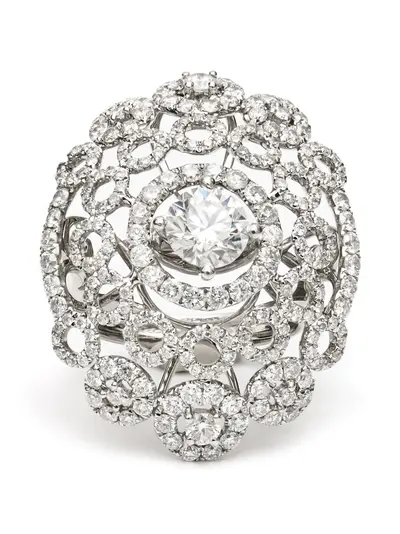 18kt white gold polished finish pavé setting round brilliant J-VS1 diamonds totalling 4.90 carats Hallmarked in the United Kingdom at the London Assay Office. Normal everyday use and external agents may reduce the lustre of gemstones and gold surfaces. To maintain, use specific, non-abrasive products specially meant for cleaning jewellery. Condition: GOOD. This previously owned and used item is in good condition with minimal signs of use. This may include fading of material or plating and scratches.