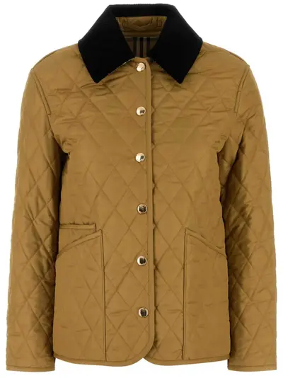 beige cotton front button fastening diamond-quilted detailing long sleeves side patch pockets
