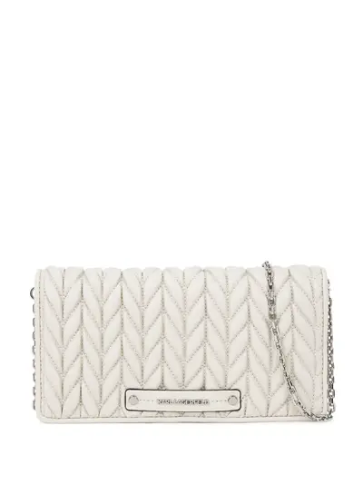 white foldover top with magnetic fastening quilted chain-link shoulder strap logo patch to the front
