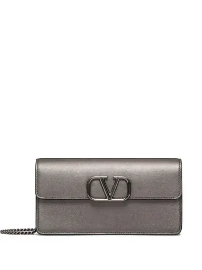 silver-tone calf leather foldover top with magnetic fastening internal zip-fastening pocket VLogo Signature chain-link shoulder strap rectangle shape