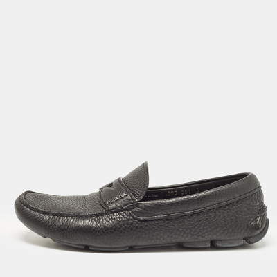 Prada Black Leather Slip On Loafers Size 41 1105773 (чёрный, lpn29152837)