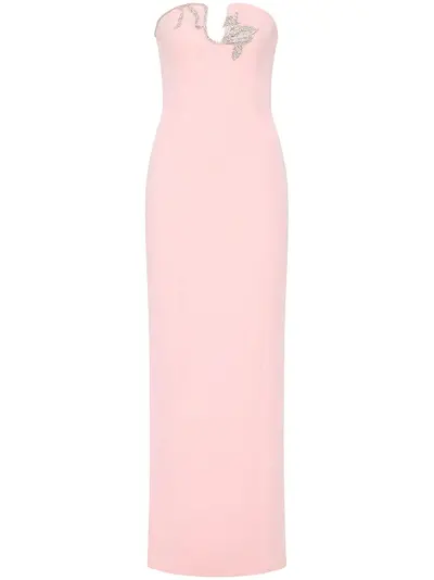 pink concealed rear zip fastening U-neck strapless rear slit