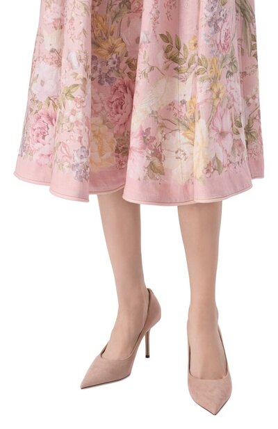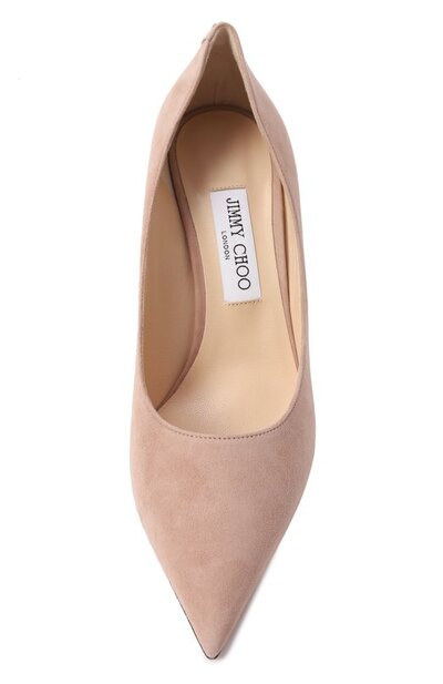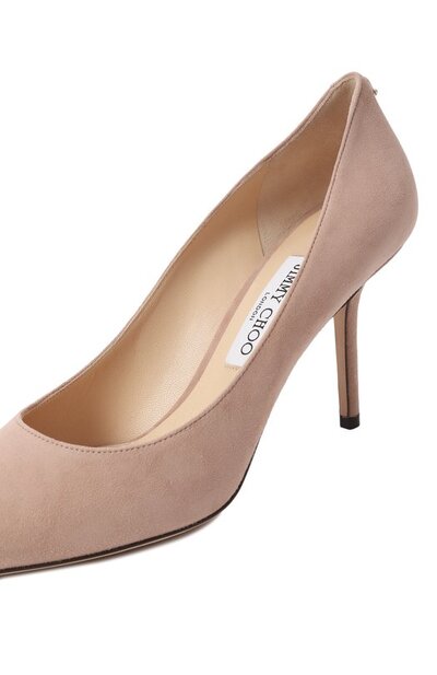 Туфли Love с зауженным мысом и глубоким вырезом выполнили из замши. Модель со шпилькой высотой 85 мм украсили сзади фирменной металлической заклепкой-монограммой.
