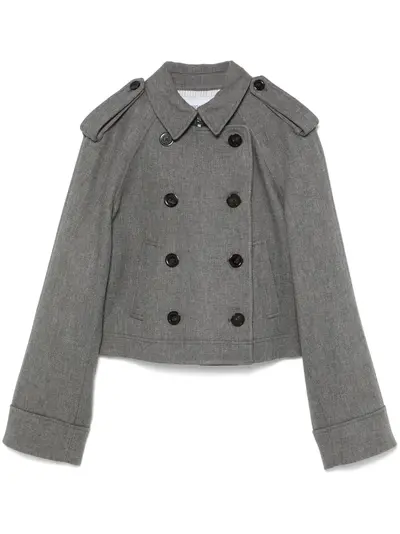 medium grey double-breasted button fastening epaulettes two side welt pockets storm flap