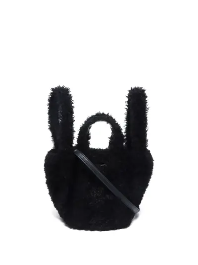 circa 2023-2024 black faux-fur design four top handles adjustable detachable shoulder strap logo lettering to the front concealed magnetic fastening main compartment internal zip-fastening pocket full lining Condition: GOOD. This previously owned and used item is in good condition with minimal signs of use. This may include fading of material or plating and scratches.