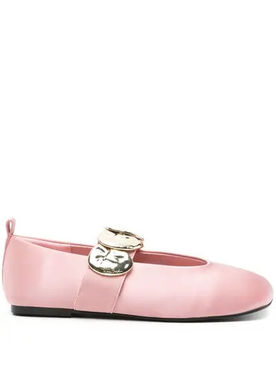 light pink elasticated strap flat rubber sole pull-tab at the heel engraved logo