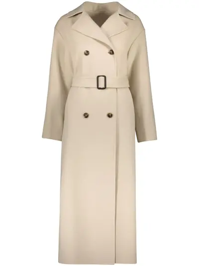 beige double-breasted button fastening belted waist detachable collar two side welt pockets