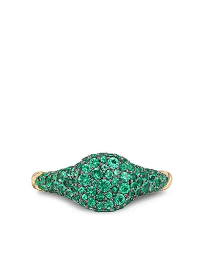 18kt yellow gold polished finish signet band pavé-set emeralds totalling 0.43 carats To ensure the shine and polish of your David Yurman piece, wash with a little non-bleach, soapy water and wipe clean with a soft cloth. Normal everyday use and external agents may reduce the lustre of gemstones and gold surfaces. To maintain, use specific, non-abrasive products specially meant for cleaning jewellery.