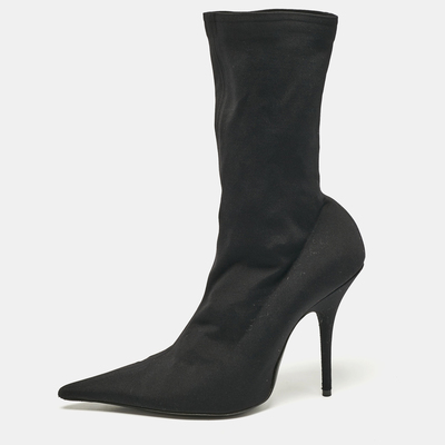 Balenciaga Black Stretch Fabric Knife Mid Calf Boots Size 38 1101268 (чёрный, lpn29173249)